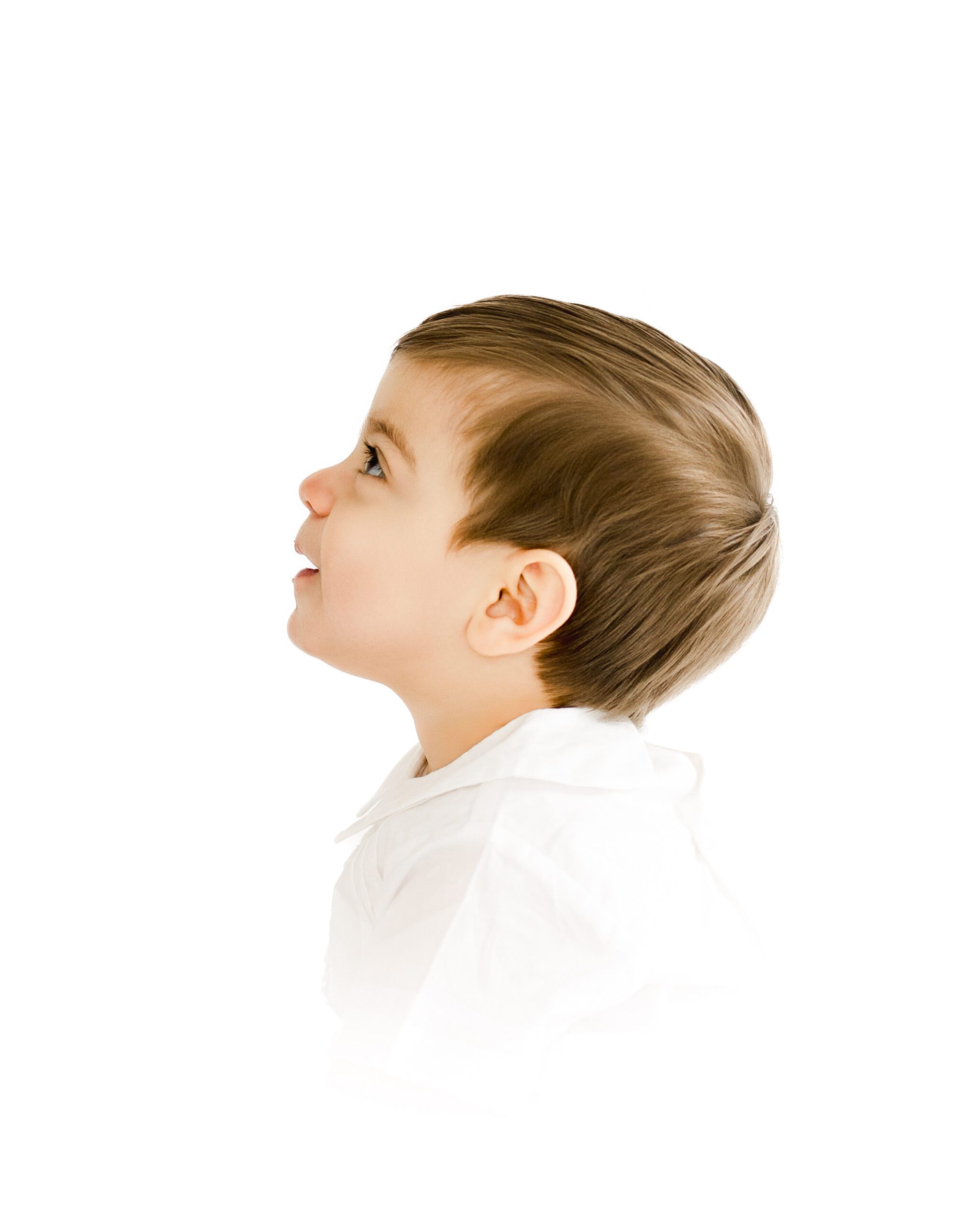 classic portraiture with natural lighting and a clean white backdrop