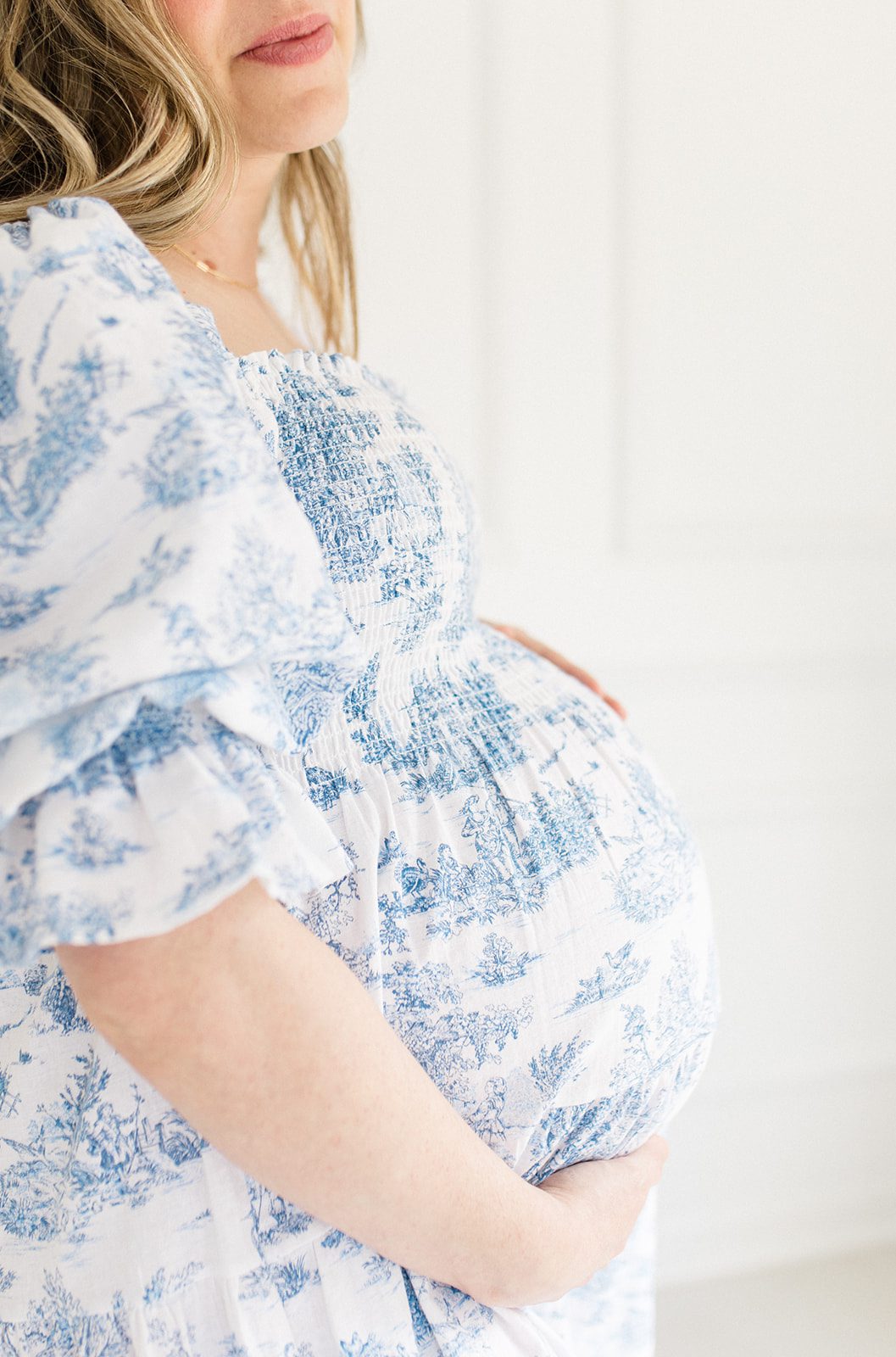 I have a client closet filled with beautiful options that are perfect for highlighting your growing bump! We will have a virtual styling appointment so you can pick a dress and we can talk about what everyone else participating in the session should wear to compliment you!